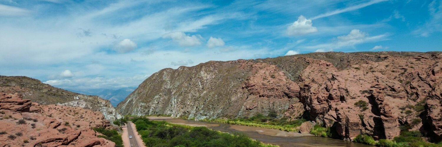 The Quebrada de las Conchas in Argentina is a breathtaking canyon of red rock formations, best appreciated from above. An aerial view reveals winding roads, dramatic cliffs, and layered geological patterns that make this natural reserve one of Salta Province’s most iconic landscapes